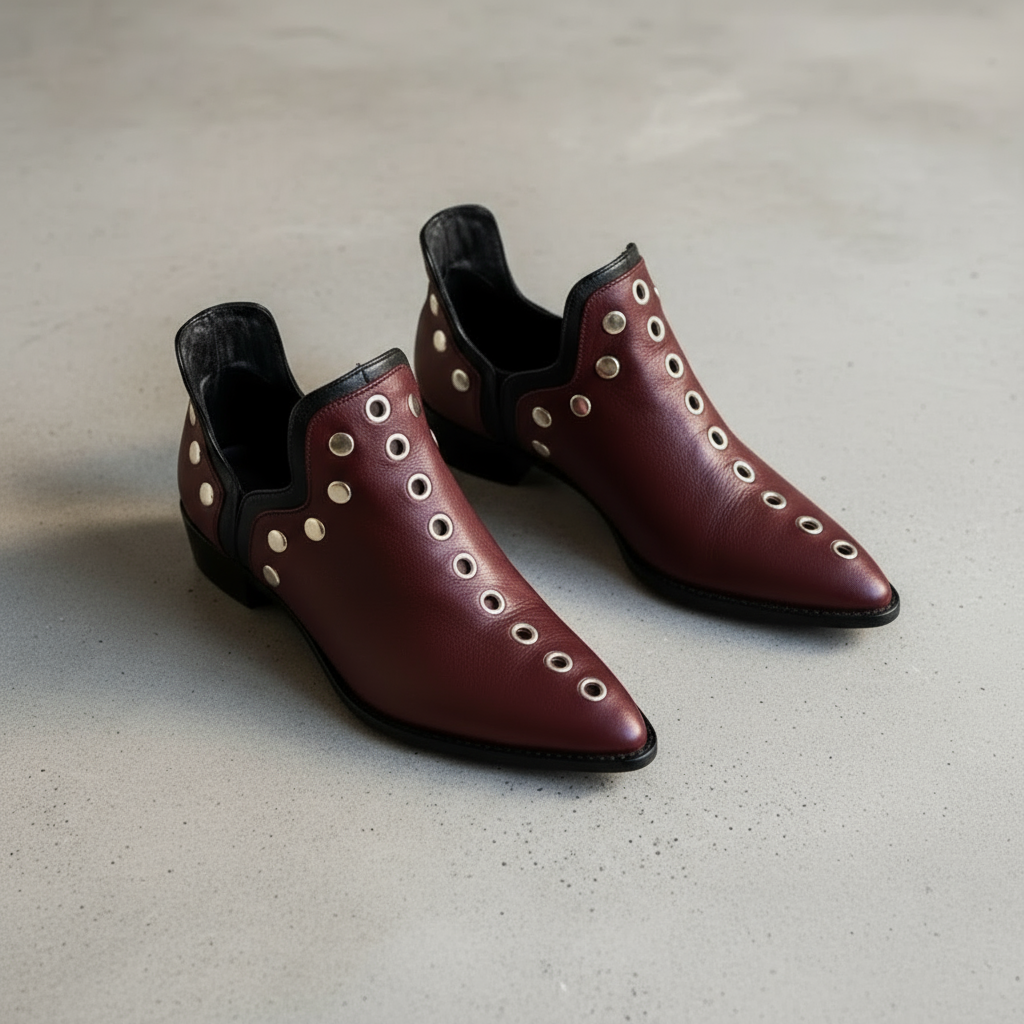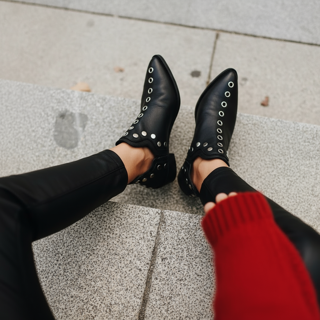 Los Botines Texas Taupe son el equilibrio perfecto entre estilo boho y sofisticación urbana. Con su diseño tipo western y detalles de tachuelas metálicos circulares, aportan un toque moderno y atrevido a cualquier look los convierte en un básico atemporal que combina fácilmente con vestidos, jeans o prendas de punto.