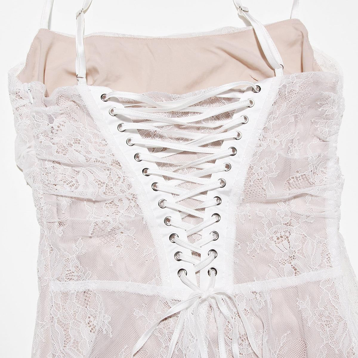 Vestido largo de encaje blanco con tirantes finos y escote recto. Su diseño entallado realza la figura, mientras que el delicado tejido floral le aporta un aire romántico y elegante. Ideal para ocasiones especiales, eventos formales o como opción perfecta para invitadas y novias modernas.
