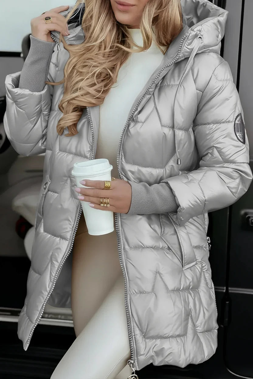 Envuélvase en comodidad y estilo moderno con esta chaqueta acolchada larga y suave. Su relleno aislante mantiene el calor sin añadir peso, mientras que la capucha fija protege del viento y la lluvia ligera.